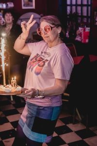 I challenged myself to wear something I would have sewn myself to celebrate my 50th winter even though I had never really sewn before and I did it !!! I created a jeans patchwork and sewed a very 70s mini skirt☮️