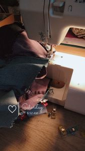 Je me suis lancé le défi de porter un vêtement cousu moi-même pour fêter mes 50 hivers alors que je n’ai jamais vraiment cousu, et bien j’ai réussi !!! J’ai créé un tissu en patchwork de jeans et j’ai cousu une mini jupe très seventies ☮️