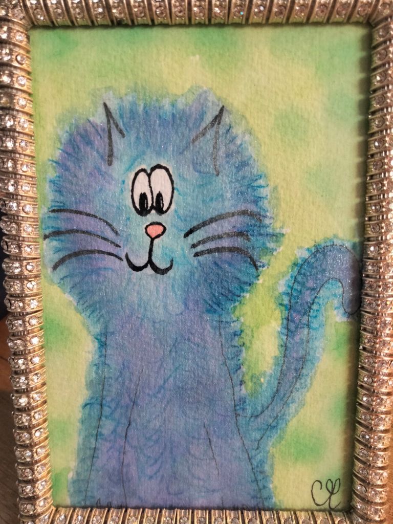 Chat à l’aquarelle pour une copine, j’ai essayé de trouver un joli cadre 😊/ watercolor cat for a friend, I tried to find a pretty frame 😊