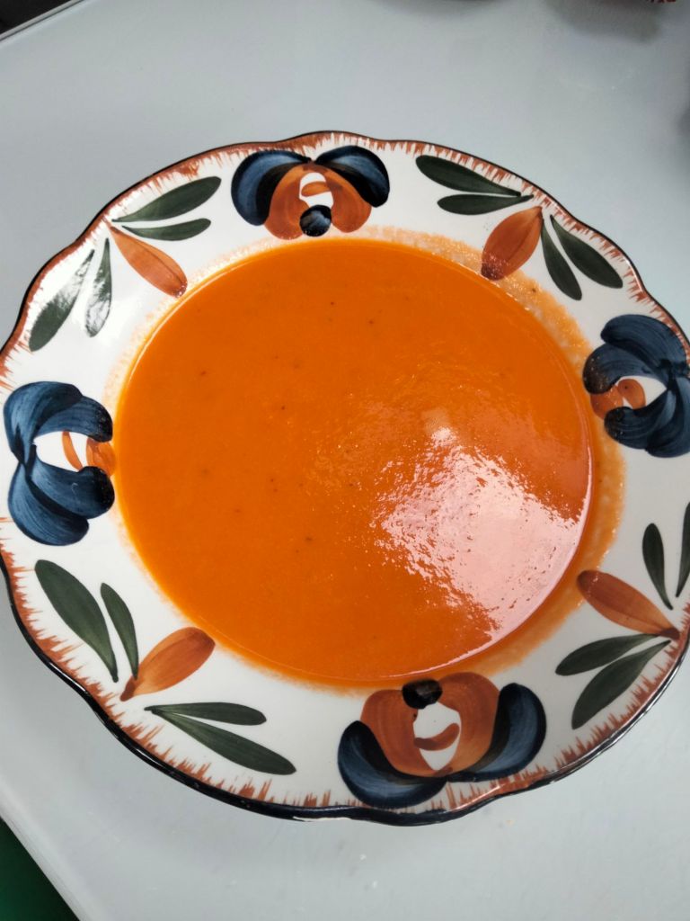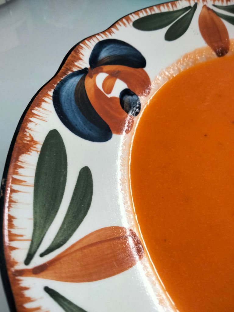 Petit plaisir d’une soupe maison avec les tomates du jardin dans une assiette vintage 🥣🍅🍽️ Little pleasure with a home made soup with the tomatoes from the garden in a vintage plate 🥣🍅🍽️