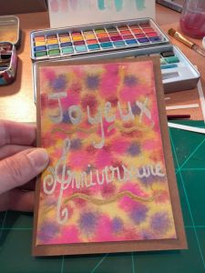 Carte d’anniversaire à l’aquarelle et au feutre pour ma marraine 🎉 birthday card with watercolor and markers for my godmother 🎉
