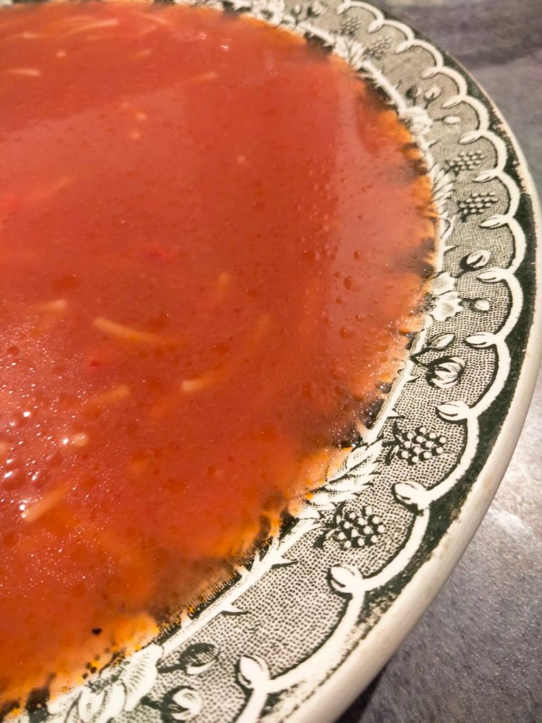 Chicken broth with vermicelli noodles: a delicious comfort food served in pretty vintage tableware!