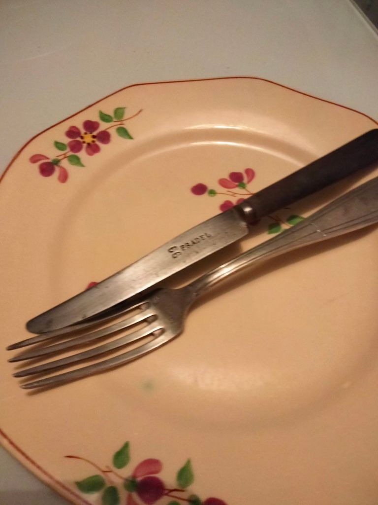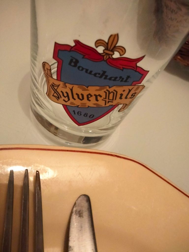 My enthusiasm for vintage tableware began a few years ago now, and I continue to collect items here and there. This plate is on its own, but the glass is part of a collection that I continue to expand. They are glasses from the Bouchart Brewery. As for the cutlery, I have no idea how old it is, but it’s old 😂