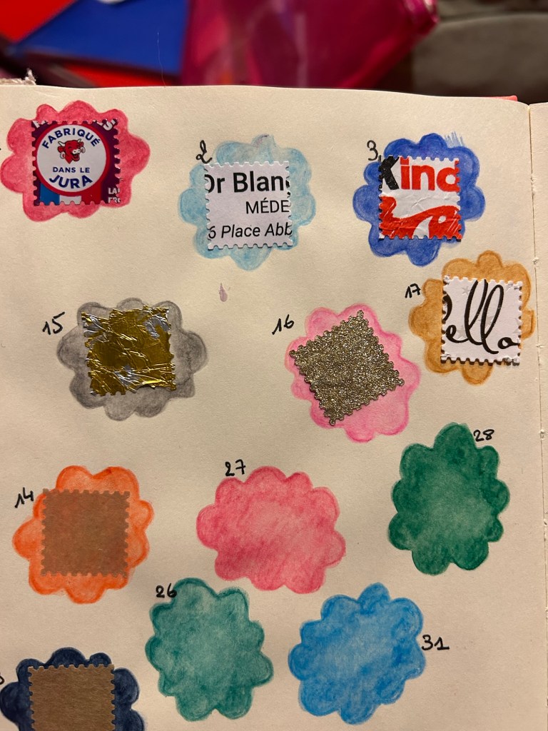 Ma double page de timbres souvenirs du mois de janvier avance plutôt bien! Je ne m’attendais pas à prendre plaisir à essayer de trouver « LE » petit bout de papier qui va bien 😂 et je suis agréablement surprise aussi de la réaction hyper positive et enthousiaste des personnes à qui j’explique mon petit jeu !