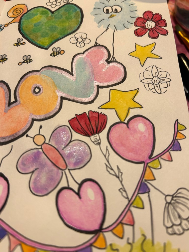 Sometimes I only draw/paint for a few minutes in the evening, but often I lose track of time and say, “Oh shoot, it’s time to go to bed” 😂