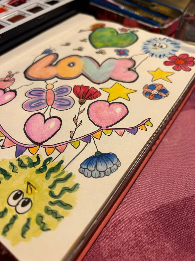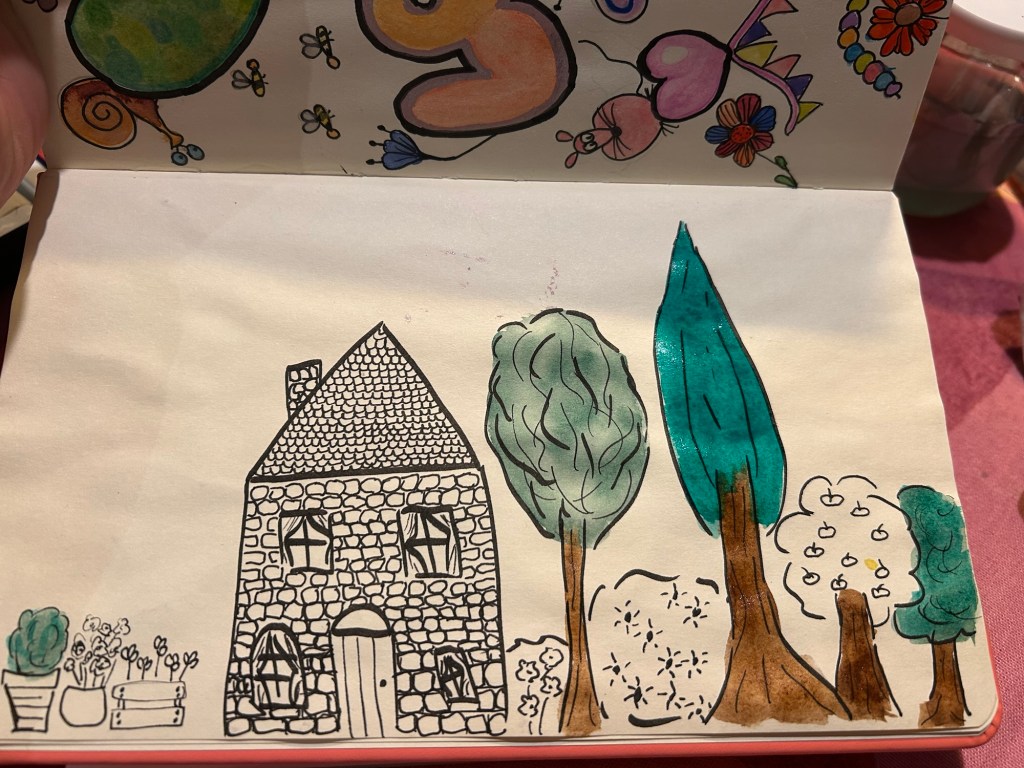 I kept on filling my Love page by adding flowers, and I started another completely different page with a stone house and a small garden.