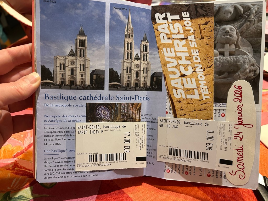 And here is my double-page of journaling from our weekend in Paris. My head is filled with memories, and so is my notebook ! The date is written in red ink from Jacques Herbin, which is a very good brand of ink!